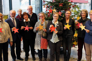 Die Initiatoren der Wunschbaumaktion rund um Städteregionsrat Helmut Etschenberg (2. v. l.) haben sich bereits die ersten Kinderwunsch-Sterne ausgesucht. [Foto: SRAC]